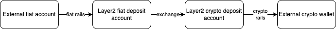 We need two accounts, a fiat deposit account and a crypto deposit account.
