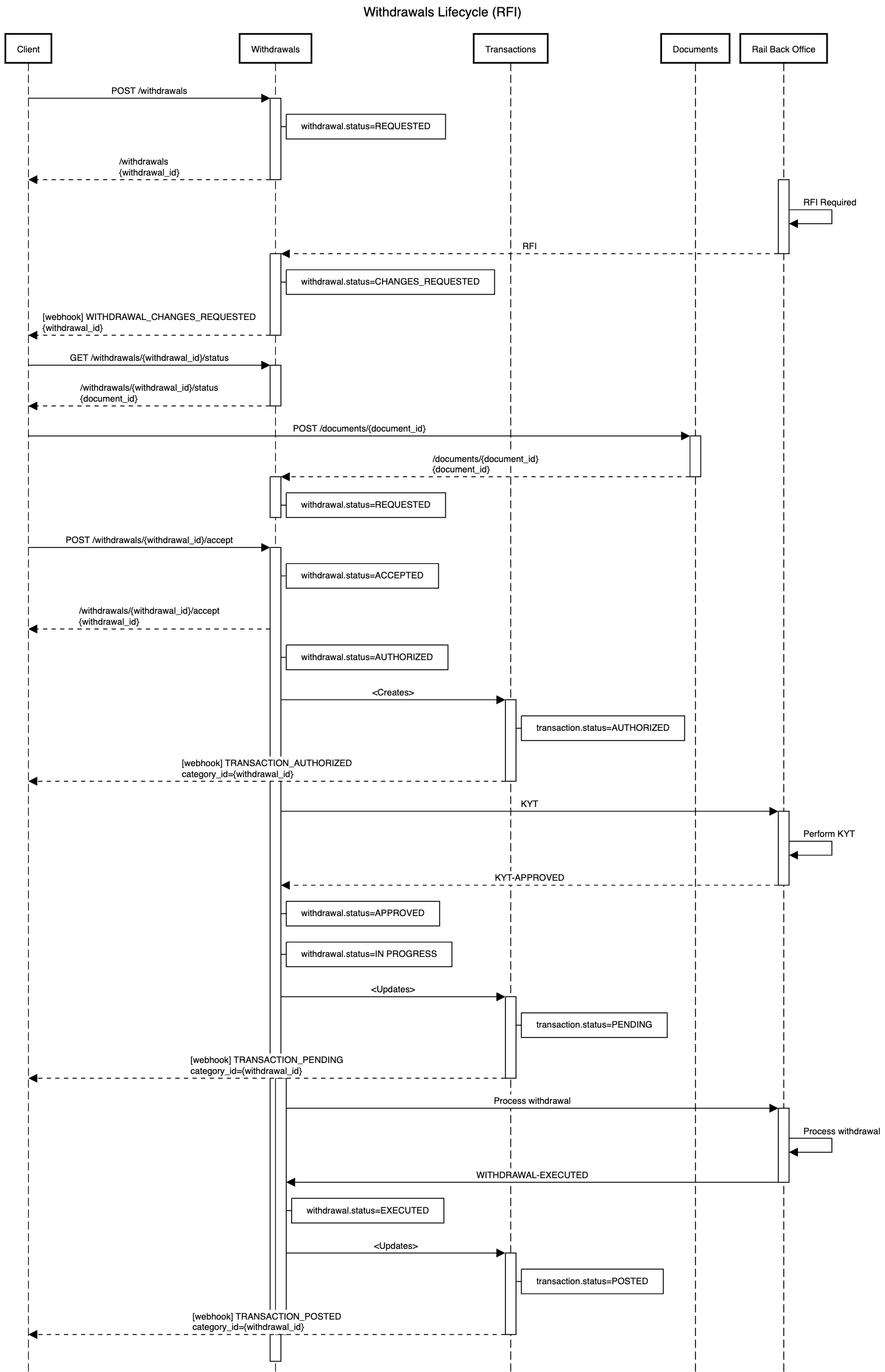 | RFI response is accepted. Withdrawal begins processing again. | IN_PROGRESS |